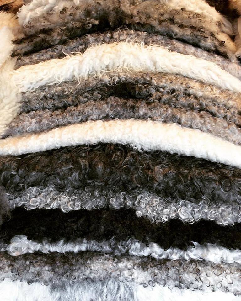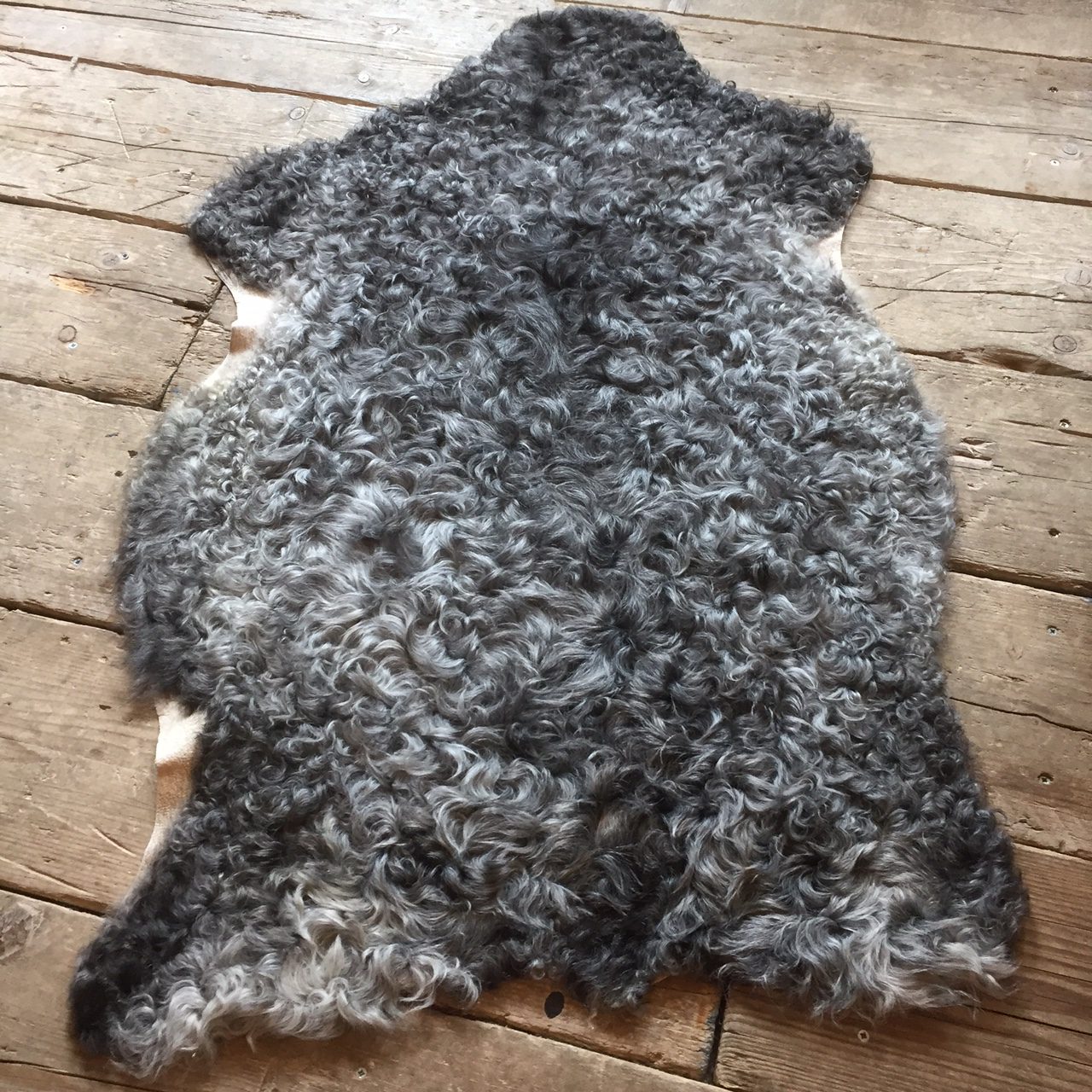 These amazing natural-coloured sheepskins are from the Swedish island of Gotland, in the Baltic.The lambs are black when they are born, then change to a range of greys, cream, white, brown and charcoal.